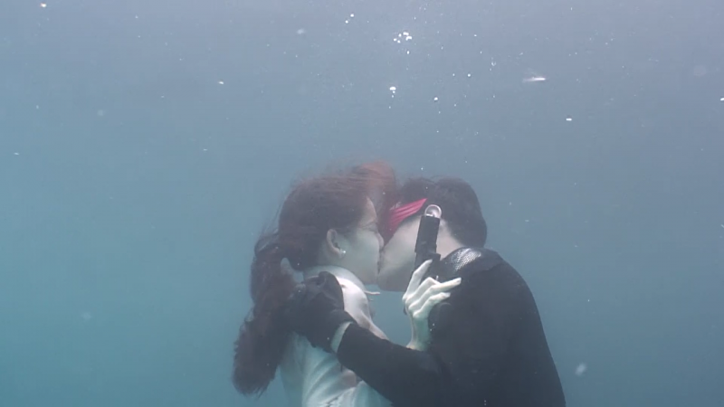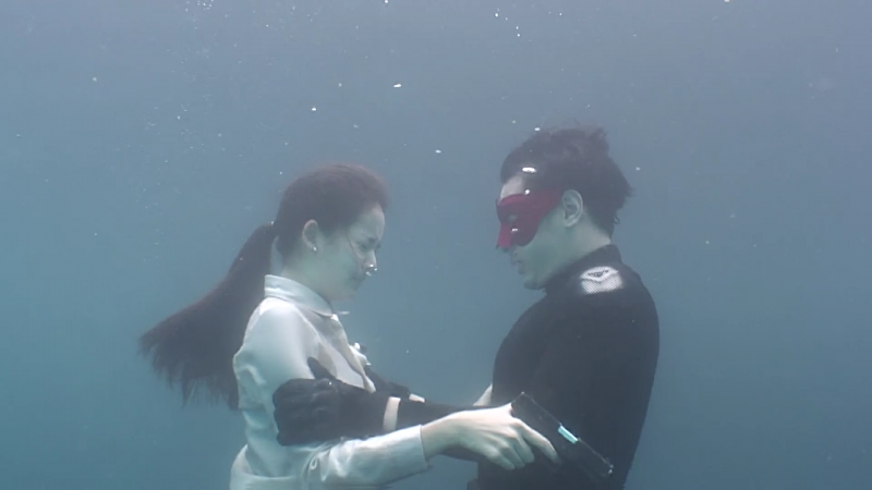 เบื้องหลังการถ่ายทำ ฉากที่ทำให้ทุกคนได้ฟินฉากนี้ ไม่ง่ายอย่างภาพที่เห็น งานนี้โอริเวอร์ บีเวอร์ ผู้จัดซึ่งรั้งตำแหน่งผู้กำกับต้องการให้ภาพที่ออกมาสวยงามและสมจริงที่สุด การถ่ายทำใต้น้ำที่ไม่ใช่เรื่องง่ายอยู่แล้ว จึงยากขึ้นไปอีก เพราะทั้ง อ๋อม และ โบว์ จะต้องกลั้นลมหายใจ แถมต้องทรงตัวในน้ำ รวมถึงสิ่งสำคัญที่สุด คือการลืมตาใต้น้ำ ซึ่งไม่ใช่เรื่องง่าย ในส่วนด้านความปลอดภัย ทีมงานเตรียมความพร้อมไว้เป็นอย่างดี กว่าจะได้ภาพสวยงามฉากนี้ ก็ต้องใช้เวลาพอสมควร แต่พอนักแสดงทั้งคู่ได้เห็นภาพก็บอกเลยว่าหายเหนื่อยเป็นปลิดทิ้ง
