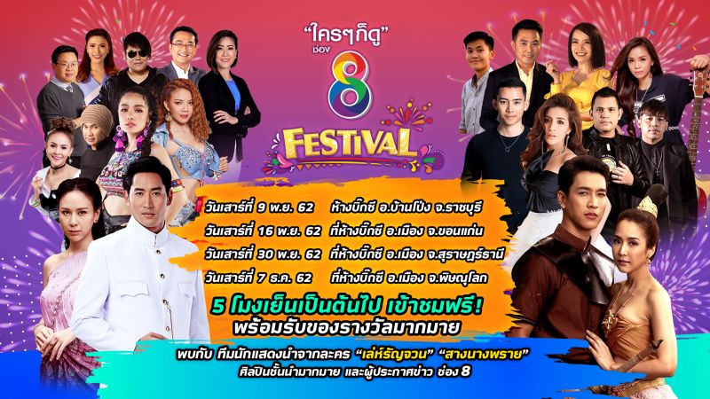 ระเบิดความมันส์ ‘ใครๆ ก็ดู ช่อง 8 เฟสติวัล’ขนทัพดารา-นักร้อง ลุย 4 ภาคทั่วไทย