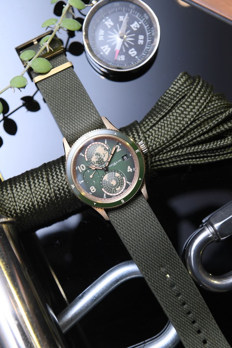 “มงต์บลองค์ได้นำนาฬิกาโครโนกราฟสำหรับทหารอันเก่าแก่ ซึ่งโรงงานมิเนอร์วาผลิตขึ้นในช่วงทศวรรษที่ 1930 มาตีความและสร้างสรรค์เป็นผลงานใหม่ในคอลเลกชั่น Montblanc 1858 เพื่อเป็นการแสดงคารวะต่อมรดกอันยิ่งใหญ่ของโรงงานมิเนอร์วา ซึ่งมีประวัติศาสตร์มายาวนาน และมงต์บลองค์ได้เข้าถือหุ้นเมื่อปี ค.ศ. 2006 จึงทำให้ Montblanc1858 Geosphere มีกลิ่นอายของความวินเทจในสไตล์ Adventure เหมาะสำหรับนักผจญภัยและนักสำรวจที่ต้องการท่องโลกกว้าง โดยไฮไลท์พิเศษอยู่ที่การแสดงฟังก์ชันเวิลด์ไทม์ผ่านหน้าปัดรูปลูกโลก ซึ่งจะสามารถแสดงเวลาทั้งขั้วโลกเหนือและใต้ได้ แบบ 24 ชั่วโมงต่อรอบ Montblanc1858 Geosphere ผลิตเพียง 1,858 เรือนเท่านั้น ราคาอยู่ที่ 6,300 เหรียญสหรัฐฯ (ประมาณ 210,000 บาท) และเพื่อรับประกันคุณภาพ นาฬิการุ่นนี้ จึงต้องผ่านการทดสอบป็นเวลา 500 ชั่วโมง ภายใต้แบบการทดสอบและการจำลองสภาวะให้เหมือนกับการสวมใส่ในชีวิตจริง”