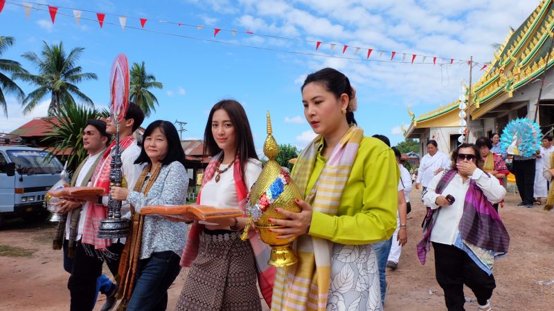 ‘แม๊กกี้-โอ๊ต’ร่วมบุญงานกฐิน วัดโนนศิลาอาส์นวราราม จ.อุดรธานี