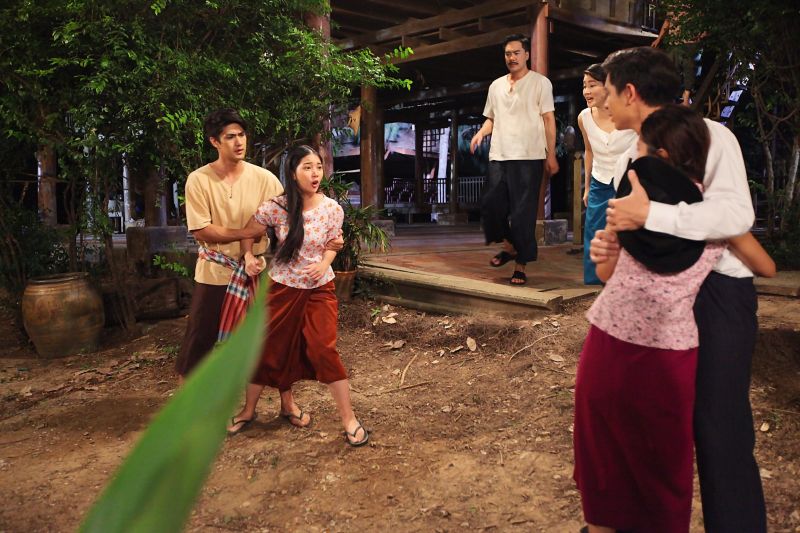 ฉากนี้เป็นตอนที่มิกหรือโมก(โดนัท–ภัทรพลฒ์)แอบมาหาพวงชมพู(เบลล่า–ไรวินทร์)แล้วแกล้งเซเป็นลม พวงชมพูรีบประคอง มิกได้ทีรีบประชิดตัวหวังอ่อยเหยื่อให้ติดกับดัก มิกค่อยๆก้มลงจูบพวงชมพู พวงแสด(คุกกี้–ญดา)โผล่เข้ามาเห็นเลยเกิดปากเสียงตบตีกันกับพวงชมพูที่มาแย่งมิก