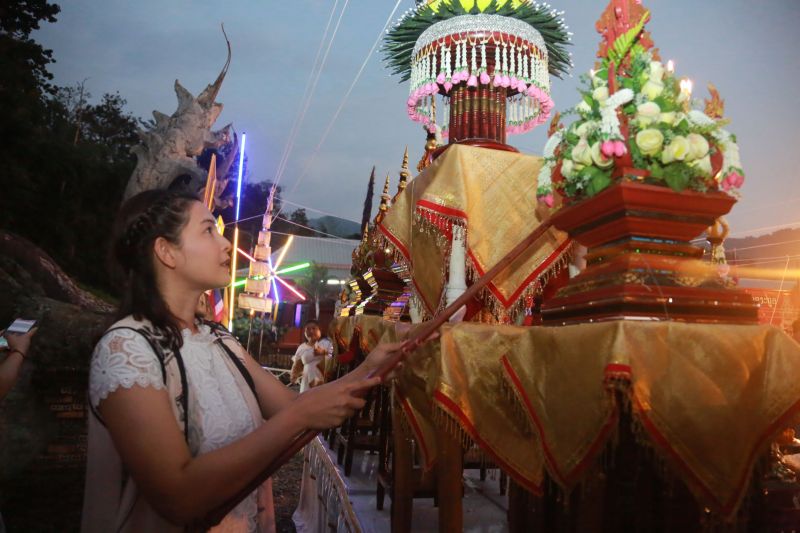 เช้าวันรุ่งขึ้น (10 พฤศจิกายน) ก็ถือฤกษ์ดี เวลา 09.00 น. คุณบอล, คุณโอ๋, จา พนม และครีม ธิชาชา ก็เข้าร่วมพิธีแห่องค์กฐิน รอบพระอุโบสถ โดยสาวครีมขอทำหน้าที่เป็น “นางฟ้า” รำหน้าขบวน พร้อมกับพ่อแม่พี่น้องชาวดอยสะเก็ดและอำเถอใกล้เคียงอย่างสนุกสนาน