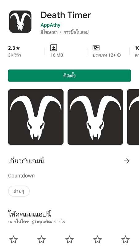 คุณจะกล้าท้าโหลดมาลองไหม? ดาวน์โหลดแอปบอกวันตายได้เลย ทั้งบนระบบ iOS (ชื่อแอป Countdown App) และบนระบบ Android (ชื่อแอป Death Timer) ทั้งนี้ยังมีรีวิวชวนสะพรึงจากผู้ใช้แอปในต่างประเทศที่ระบุว่าหลังจากดาวน์โหลดมาแล้วกลับเกิดอุบัติเหตุปริศนาของจริงขึ้นกับตัวด้วยเช่นกัน…