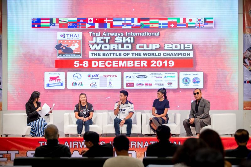การบินไทย ทำสำเร็จ! ใช้กีฬาไทยที่สามารถสร้างแพทฟอร์มระดับโลกได้ เพิ่มกิจกรรมเดินทางมาท่องเที่ยวเมืองไทย สอดรับกับแนวคิดของการกีฬาแห่งประเทศไทย ที่ต้องการผลักดันงานกีฬาไทย ด้านทรัพย์สินทางปัญญา ซึ่งคนไทยยังทำน้อย ให้เห็นประโยชน์ชัด สุวัจน์ ประธานจัดฯ เผยเจ็ตสกีสู้มานาน ครั้งนี้สำเร็จร่วมกัน ไทยขึ้นคุมการบริหารลิขสิทธิ์กีฬาเจ็ตสกีทั่วโลก สร้างประโยชน์มหาศาล สร้างชื่อเสียงชาติแถมโกยรายได้ท่องเที่ยว ขอแรงใจร่วมเชียร์ 2 แชมป์โลกดัง “สุภัค-เพิ่มพล” ล่าซุปเปอร์แชมป์ เปิ้ล-นาคร ขอเข้าคัดทีมชาติด้วย ด้านสาวแนท-อนิพรณ์ ชวนตามไปเชียร์ติดขอบสนาม สนุกตื่นเต้นทั้งครอบครัวแน่ 5-8 ธันวาคมนี้ ณ เมืองพัทยา