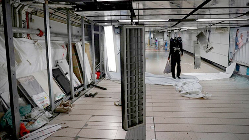 Rail operator MTR Corporation said it would not provide bus services because of “adverse road conditions”. Demonstrators have been seen building barricades on several major roads to cripple traffic, tossing bricks and other obstacles.