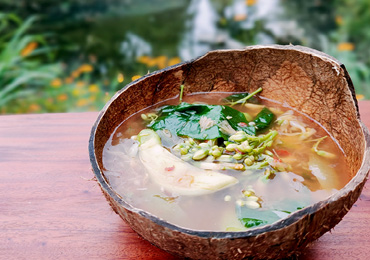 โปรแกรมที่ 3 คือ อร่อยแท้และดีจริง ที่ห้องอาหารอินจัน โดยเชฟออกแบบ 3 เมนูพิเศษมาเอาใจลูกค้าสำหรับช่วงหน้าฝนโดยเฉพาะ ได้แก่ 1.เมนูไก่โคราชออร์แกนิกต้มขมิ้น ที่มีส่วนผสมของสมุนไพร รสเผ็ดร้อน และมีสารออกฤทธิ์ทางยา ช่วยป้องกันหวัด อย่างเช่น ข่า ตะไคร้ ใบมะกรูด หัวหอมกระเทียม 2.เมนูผัดไก่โคราชกับน้ำพริกมะขาม จานนี้จะให้รสชาติเปรี้ยวละมุนของมะขามออร์แกนิก ที่มีวิตามินซีและแคลเซียมสูง และ 3.เมนูไก่โคราชออร์แกนิกทอดเกลือ ที่มีส่วนผสมของเครื่องปรุง อย่างเกลือ พริก รากผักชี และใบมะกรูดที่ช่วยต้านหวัดหน้าฝน และทุกเมนูนอกจากให้คุณค่าทางโภชนาการ ยังได้รสชาติความอร่อยของเนื้อไก่โคราช ซึ่งถือเป็นเนื้อไก่เพื่อสุขภาพที่มีความเป็นเอกลักษณ์เฉพาะ เนื้อสัมผัสเหนียวนุ่ม หนึบหนับ ชุ่มฉ่ำ มีคอลลาเจนสูง ไขมันต่ำอีกทั้ง ยังมีพืชผักตามฤดูกาลหลากหลายชนิดให้ลูกค้าได้เลือกสั่ง เช่น ดอกแค กระเจี๊ยบเขียว ผักปรัง ฯลฯ ขณะที่เมนูขนมหวาน ไฮไลท์คือ มะกรูดลอยแก้วโดยห้องอาหารอินจัน เปิดให้บริการทุกวัน 11.00-15.00 น. และวันเสาร์เพิ่มรอบเย็นเวลา 17.00-21.00 น.