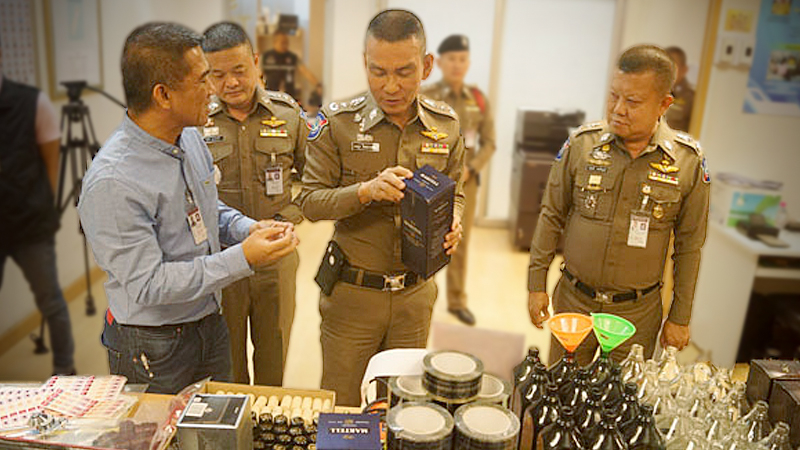 He was captured on November 18 while delivering the alcohol to his customer at a large supermarket in the Bang Kapi. Police also found more bottles of fake alcohol and counterfeit labels. He admitted that he has been doing this for more than 30 years. He was also charged with overstaying his visa.