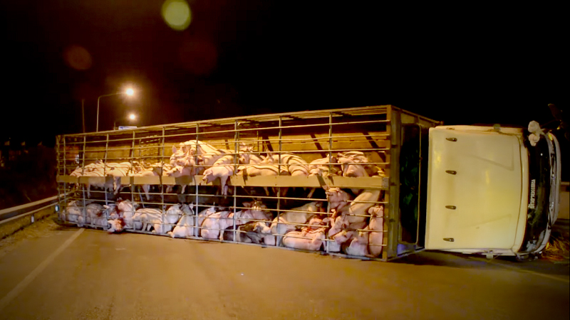 Pigs die as lorry transporting them overturns