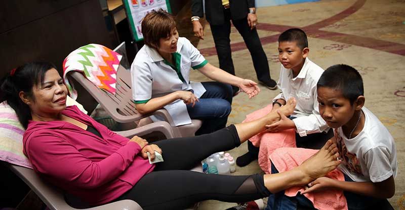 ศรีรัตน์ นาผลงาม อาสาสมัครสาธารณสุข (อสส.) เขตคลองเตย ต้นแบบของชาวเขตคลองเตย เล่าว่า “เป็นอสส. อยู่ในเขตพื้นที่คลองเตยถึง 12 ปี ปัญหาหลักที่พบคือคนสูงวัยจะป่วยเป็นโรคเบาหวาน ความดัน ไขมันสูง หรือโรค NCDs เป็นจำนวนมาก ปัญหาของเด็กๆ ในชุมชนถูกเลี้ยงแบบตามมีตามเกิดปล่อยให้ใช้ชีวิตไปกับการทำสิ่งที่ไม่มีประโยชน์ พ่อแม่ต้องทำงานจนไม่มีเวลาดูแลลูกตัวเอง จึงคิดทำโครงการ “โยคะ-ตันเถียน ล็อค 6 และ นวดเท้าเพื่อสุขภาพ” ขึ้นเพื่อเป็นการช่วยส่งเสริมสุขภาพกายและสุขภาพจิตของสมาชิกในชุมชนคลองเตย ให้เด็กและเยาวชนได้ใช้เวลาว่างให้เกิดประโยชน์ ตลอดจนส่งเสริมการสร้างสัมพันธ์ที่ดีในครอบครัว”
