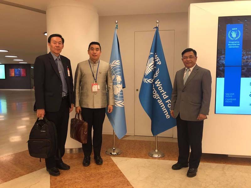 เมื่อวันที่ 24 พฤศจิกายน 2562 สำนักที่ปรึกษาการเกษตรของไทยประจำองค์การอาหารและเกษตรแห่งสหประชาชาติ (เอฟเอโอ) ณ กรุงโรม ประเทศอิตาลี นายอลงกรณ์ พลบุตร ที่ปรึกษารัฐมนตรีว่าการกระทรวงเกษตรและสหกรณ์ เปิดเผยว่า ตนพร้อมด้วย นายพลพิศิลป์ สุวรรณชัย ผู้อำนวยการกองประมงต่างประเทศ นายธนวรรษ เทียนสิน อัครราชทูต (ฝ่ายเกษตร) และผู้แทนถาวรไทยประจำสหประชาชาติ (FAO/IFAD/WFP) ณ กรุงโรม น.ส.รัชนก แสงเพ็ญจันทร์ ที่ปรึกษา (ฝ่ายเกษตร) และ นางศุภจิต ศรีอริยวัฒน์ เลขานุการเอก (ฝ่ายเกษตร) ได้เข้าร่วมการประชุมหารือกับ4ผู้บริหารของยูเอ็นได้แก่ Mr.David Kaatud ผู้อำนวยการด้านความร่วมมือของโครงการอาหารโลก (World Food Programme หรือ WFP)