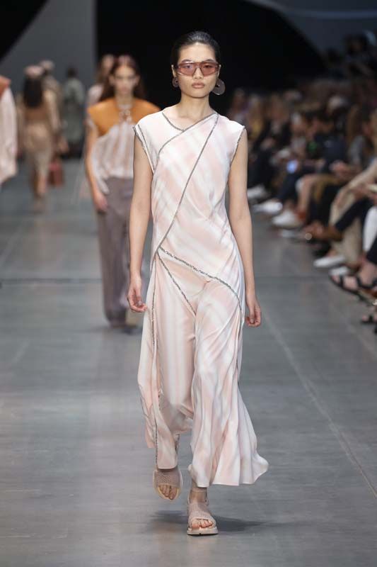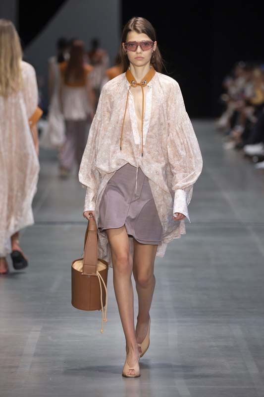 คอลเลคชั่นนี้ได้ผสมผสานความแตกต่างระหว่างการตัดเย็บอันแสนประณีตและความพลิ้วไหวของเสื้อเบลาส์ รวมถึงเดรสลายพิมพ์ในเฉดสีอ่อนที่คล้ายกับแสงตะวันกำลังลาลับขอบฟ้า ชุดเดรสในซีซั่นนี้โดดเด่นด้วยคัตติ้งที่เป็นเอกลักษณ์ นอกจากนั้นการแต่งตัวยังได้ถูกตีความใหม่โดยเน้นความเป็นผู้หญิงมากขึ้น ทั้งเสื้อเชิ้ตผ้าฝ้าย kaftans จับคู่กับเสื้อคลุม ponchos และชุดสูทในโทนสีสไตล์เฟมินีนและวัสดุผ้าแบบนุ่ม ในขณะที่กางเกงและกระโปรงมีการตกแต่งด้วยลายพิมพ์ลายดอกไม้และเสื้อเบลาส์ที่มีโซ่และหนังประดับประดาอยู่ ซึ่งลายพิมพ์ลายดอกไม้มาในโทนสีเรียบ ๆ แต่ซ่อนรายละเอียดด้วยผ้าแบบมันเงาเอาไว้