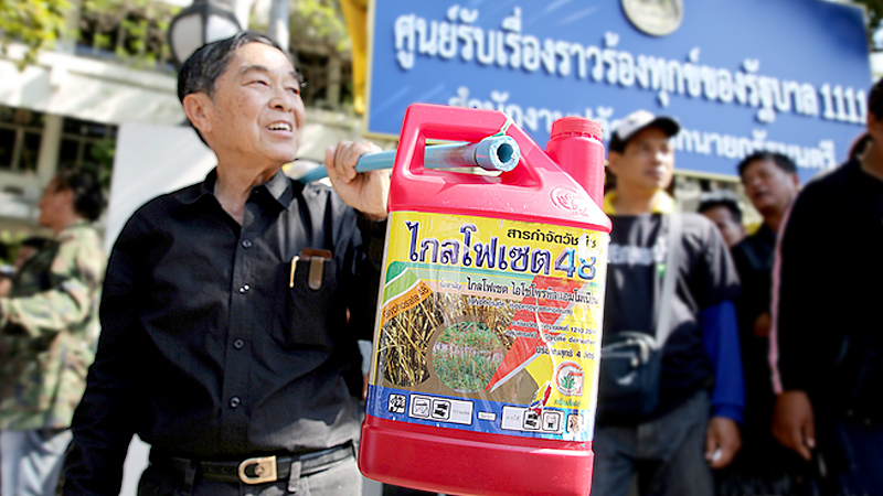 A group of farmers dressed in black gathered in front Government House today (November 26) to submit a petition to Prime Minister Prayut Chan-o-cha stating their opposition to the banning of Paraquat, Chlorpyrifos and Glyphosate, and explaining they wanted to continue using the chemicals under the proper procedures.