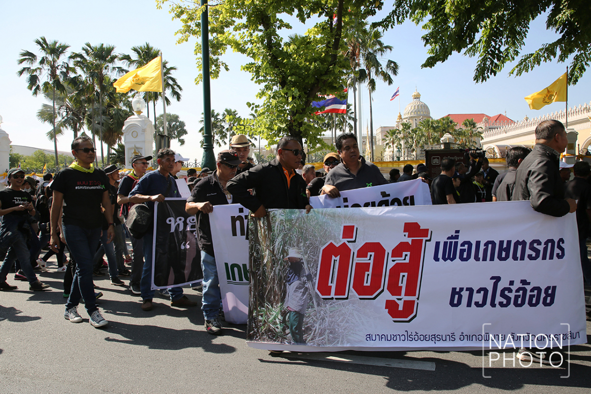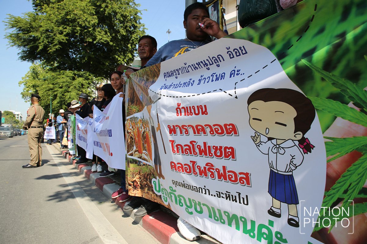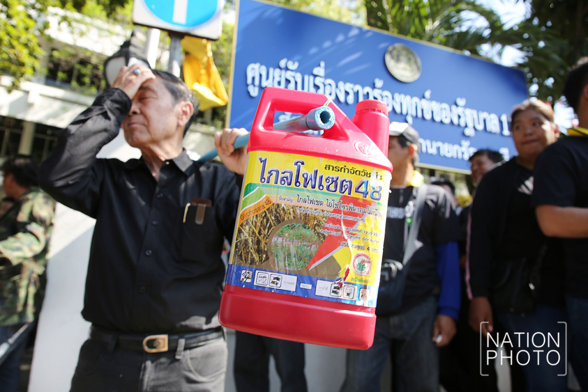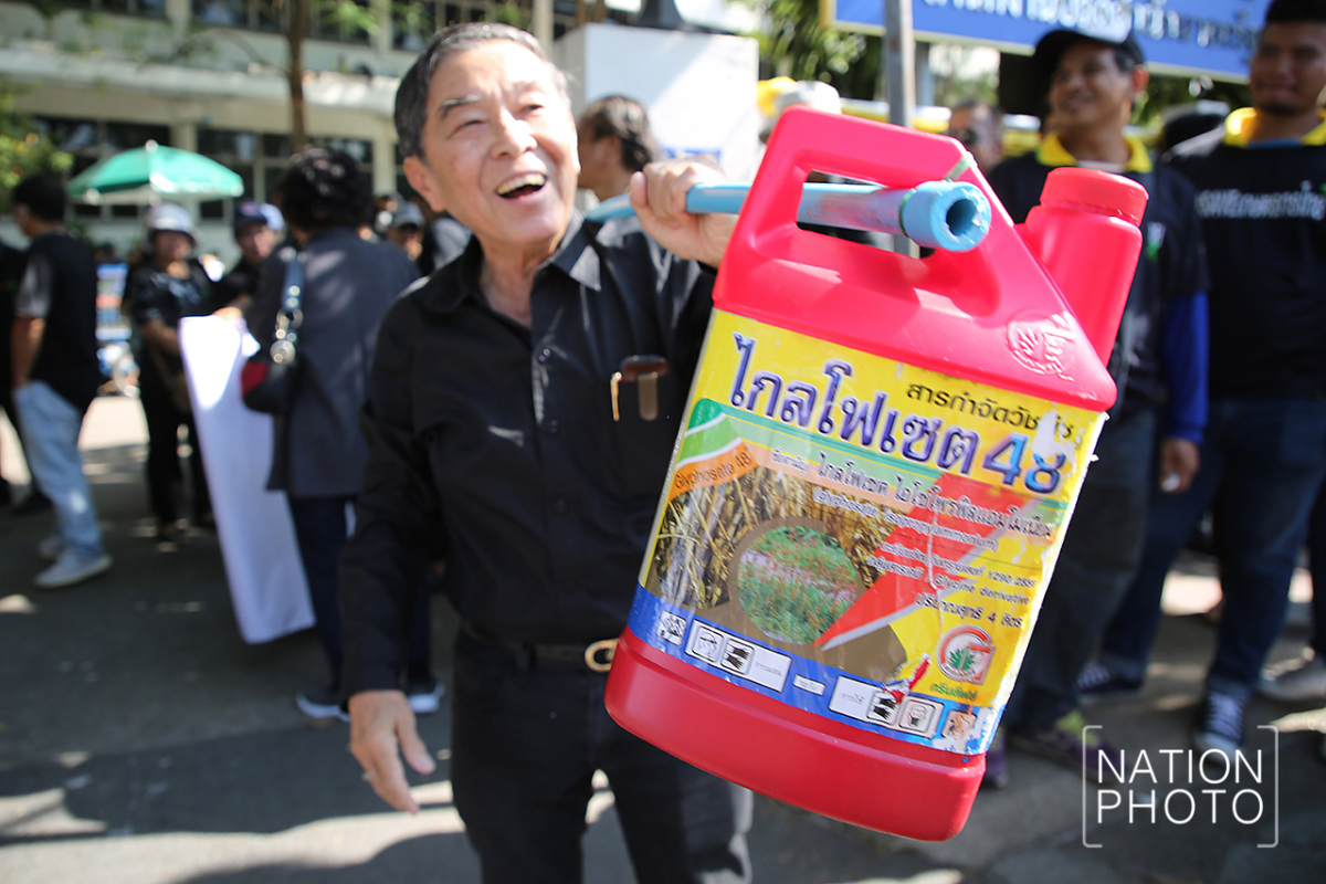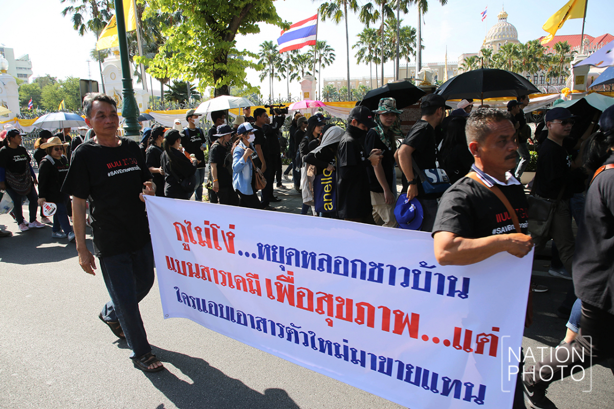 A group of farmers dressed in black gathered in front Government House today (November 26) to submit a petition to Prime Minister Prayut Chan-o-cha stating their opposition to the banning of Paraquat, Chlorpyrifos and Glyphosate, and explaining they wanted to continue using the chemicals under the proper procedures.
