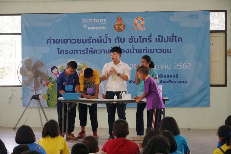 สำหรับค่ายเยาวชนรักษ์น้ำเป็นกิจกรรมที่จัดขึ้นสำหรับนักเรียนในระดับชั้นประถมศึกษาปีที่ 4-มัธยมศึกษาปีที่ 2 เพื่อให้เด็กและเยาวชนได้เรียนรู้ทำความเข้าใจ และลงมือปฏิบัติผ่านกระบวนการเรียนรู้ในรูปแบบกิจกรรมฐานเรียนรู้ที่เกี่ยวข้องกับทรัพยากรน้ำ ซึ่งออกแบบเน้นการเรียนรู้อย่างมีส่วนร่วม การคิดวิเคราะห์วางแผน พร้อมเสริมสร้างทักษะกระบวนการทำงานเป็นกลุ่มโดยตลอดทั้ง 3 วันเด็กและเยาวชนได้เข้าร่วมทั้งกิจกรรมสันทนาการและกิจกรรมเพื่อการเรียนรู้ต่างๆ เกี่ยวกับน้ำ อาทิ วัฏจักรของน้ำ น้ำกับชีวิตประจำวัน แผนผังน้ำในโรงเรียน ปัญหาและสาเหตุที่เกี่ยวข้องกับน้ำในโรงเรียน นักสืบสายน้ำ การทำแผนที่สำรวจแหล่งน้ำในชุมชน การตรวจวัดคุณภาพน้ำด้านกายภาพและชีวภาพและการทำน้ำให้สะอาดด้วยวิธีการต่างๆ โดยน้องๆ ได้มีการนำเสนอแผนกิจกรรมโครงงานด้านการอนุรักษ์น้ำในโรงเรียนของตนเองด้วยซึ่งค่ายเยาวชนรักษ์น้ำครั้งนี้มีเด็กและเยาวชนจำนวนรวม 245 คน และคุณครู 62 คน จาก 32 โรงเรียนในจังหวัดระยอง จังหวัดสระบุรี และจังหวัดเชียงใหม่เข้าร่วมกิจกรรมโดยทั้ง 2 กิจกรรมมีพนักงานจิตอาสาซันโทรี่ เป๊ปซี่โค จำนวน 53 คน เข้าร่วมเป็นผู้ช่วยครูพี่เลี้ยงเพื่อสอนน้องๆ ทั้งนี้กิจกรรม ค่ายเยาวชนรักษ์น้ำ กับซันโทรี่ เป๊ปซี่โค จะจัดให้มีขึ้นอีกในเดือนกันยายน และพฤศจิกายนนี้