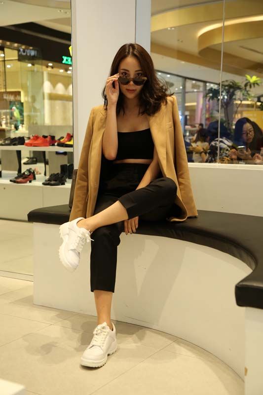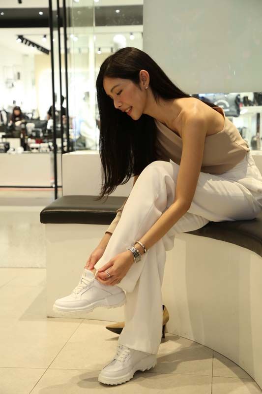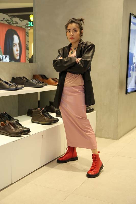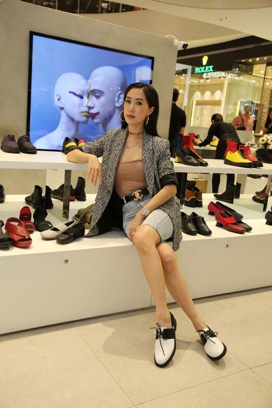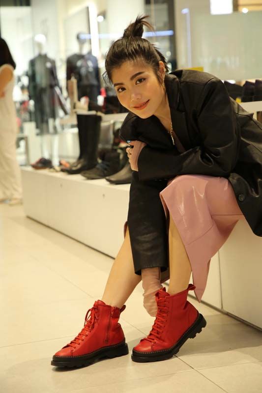 สาวหน้าหวาน โบว์ – ชมพูนุท โรจน์ศิริรัตน์ กล่าวว่า “ปกติไม่ได้แต่งตัวฉูดฉาดมากส่วนใหญ่จะใส่สีคุมโทน จะเลือกรองเท้าให้เหมาะกับในแต่ละวัน เช่นจะไปงานก็จะเลือกใส่ส้นสูง ถ้าชุดเรียบๆ ก็จะเลือกรองเท้าที่มีดีเทลสีสันสดใสหรือถ้าใส่กับเดรสสั้นจะเลือกรองเท้าพันข้อขึ้นมาสูงๆ ให้ดูมีอะไร หรือถ้าวันไหนอยากสตรีทลุคจะเลือกรองเท้าผ้าใบ สำหรับแคมเปอร์คอลเลคชั่นนี้ ชอบรองเท้าบู๊ตสีๆ เอาไว้ใส่เวลาไปต่างประเทศใช่เลยใส่ลุยๆ สบายมากค่ะ”