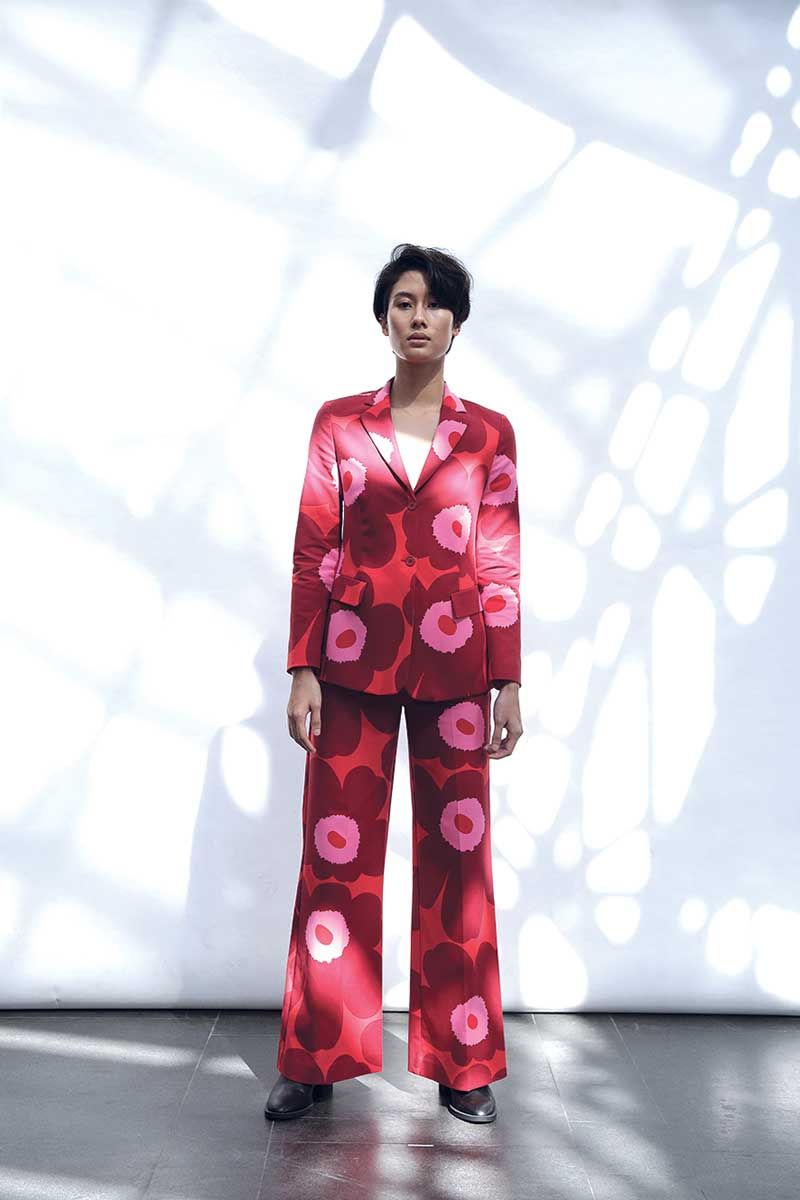 ทั้งหมดถูกสะท้อนผ่านลายพิมพ์และสีสันที่เปี่ยมด้วยพลังบนซิลลูเอท (โครงเสื้อ) ที่ทันสมัยและโดดเด่นตามคอนเซ็ปต์หลัก อาทิ ชุดกิโมโนเดรส (Kimono Dress), Reversible Coat หรือ โค้ททรงกิโมโน ที่สามารถใส่ได้ 2 ด้าน 2 ลายพิมพ์, เบลเซอร์แจ๊กเกต และแม็กซี่เดรส ทั้งหมดอยู่บนลายพิมพ์หลัก อาทิ ลาย Jokeri (โจเกริ), ลาย Sky Flowers, ลาย Kivet (กิเวต) และ ลาย Unikko (อุนิกโกะ) หรือ ดอกป๊อปปี้ ที่เป็นที่นิยมที่สุด ซึ่งทั้งหมดเป็นลายพิมพ์คลาสสิกที่ถูกออกแบบตั้งแต่ปี 1950-1970