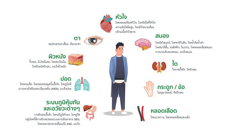 หลายคนคงคุ้นเคยกับคำว่าอนุมูลอิสระเป็นสิ่งไม่ดีต่อร่างกาย แต่รู้หรือไม่ว่าจริงๆ แล้วอนุมูลอิสระส่งผลอย่างไรต่อร่างกาย? คำตอบคือ เมื่อร่างกายมีอนุมูลอิสระมากเกินไป จนเข้าสู่ภาวะไม่สมดุลกับสารต้านอนุมูลอิสระจะทำให้เกิด “ภาวะเครียดออกซิเดชัน (Oxidative stress)” ได้ส่งผลให้เกิดความเสียหายต่อเซลล์ทั่วร่างกาย และเชื่อว่าภาวะเครียดออกซิเดชันมีส่วนเกี่ยวข้องกับการแก่ชราและการเกิดโรคที่สัมพันธ์กับอายุด้วย โดยโรคดังกล่าวสามารถเกิดได้กับทุกส่วนของร่างกายเลยทีเดียว เช่น โรคหลอดเลือดหัวใจ โรคอัลไซเมอร์ ไตวายเรื้อรัง โรครูมาตอยด์ โรคเบาหวาน เป็นต้น
