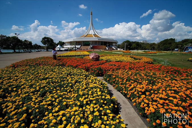 The 500-rai park is a floral wonderland, adorned with hundreds of thousands of flowers and other ornamental plants including petunias, impatiens, verbena, vinca, hollyhocks, zinnia and many species from Europe.