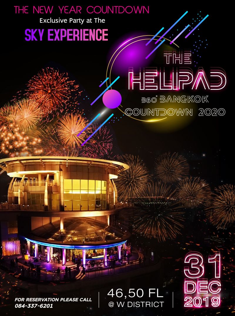 ดับเบิลยู ดิสทริค ร่วมกับ บริษัท อินเด็กซ์ ครีเอทีฟ วิลเลจ จำกัด (มหาชน) จัดงานปาร์ตี้เคาท์ดาวน์THE HELIPAD 360 องศา EXCLUSIVE PARTY AT THE SKY EXPERIENCE งานเดียวครบทุกไลฟ์สไตล์ แสง สีเสียง ความอร่อย พบกับ 2ชั้นความสุขความสนุกแบบไร้ขีดจำกัดในค่ำคืนส่งท้ายปีที่ชั้น 50เนรมิตรลานเฮลิคอปเตอร์แห่งแรกของไทยจัดงานสร้างประสบการณ์ความมันส์สุดขั้วเอาใจสาย PARTY ANIMALS และสายEDM MUSIC LOVERSพบกับดีเจชื่อดังและเทคนิคพิเศษเลเซอร์แสง สี เสียงเพียบชวนเคาท์ดาวน์คืนข้ามปีชมวิวดูพลุ 360องศาแบบตื่นตาตื่นใจพร้อมสัมผัสบรรยากาศความหรูหราในค่ำคืนพิเศษด้วยมื้อพิเศษกับคนพิเศษเพลิดเพลินไปอาหารอร่อยหลากหลายเมนูจากเชฟดังแบบสุดเอ็กซ์คลูซีฟที่ซีเอโล สกาย บาร์&เรสเตอรองส์ ที่ชั้น 46 จัดงานวันที่31ธค. 2019 นี้แล้ว