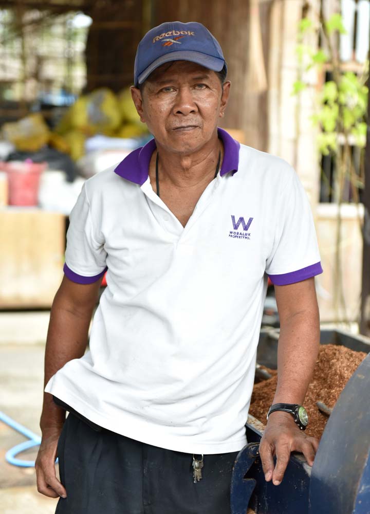 ลุงไพโรจน์ แถวเถื่อน อายุ 69 ปี ปราชญ์ชาวบ้านเผยว่า “ตอนแรกลุงก็คิดว่ายาก แต่พอเข้ามาศึกษาวิธีการแล้ว ทำให้รู้ ว่าไม่ยากเลย เพราะเรามีอัตราส่วนผสมอยู่แล้ว มีเครื่องโม่สำหรับใช้ผสม พอส่วนผสมเข้ากันดีแล้วก็นำมาใส่เครื่องอัด ซึ่ง 1 นาทีสามารถอัดได้ 14 ก้อน จากนั้นนำมาใส่ตะกร้าแล้วเอาเข้าเครื่องอบ จุดไฟด้วยเตาแก๊ส ควบคุมอุณหภูมิ 100ºC พอครบกำหนดเวลาก็ต้องเปิดฝาเพื่อระบายความร้อน ทิ้งไว้ 1 วัน จากนั้นนำออกมาแล้วหยอดเชื้อ ซึ่งการหยอดเชื้อนั้นจะต้องสะอาดเท่านั้น แล้วนำเข้าโรงบ่มจะบ่มไว้ประมาณ 26 วันขึ้นไป ต่อด้วยนำมาเปิดจุกและทำความสะอาดจุก ปล่อยทิ้งไว้โดยห้ามโดนน้ำประมาณ 5 วัน จากนั้นจึงค่อยรดน้ำและดอกเห็ดก็จะเริ่มออกดอกให้เห็น วันนี้เด็กๆ จะได้ความรู้การเพาะเห็ดตั้งแต่เริ่มเลย และสามารถนำความรู้ที่ศึกษาให้วันนี้ไปต่อยอดในอนาคตได้”