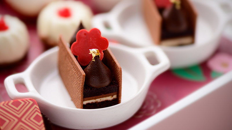 Celebrating the blossoming of the camellia flower in Japan, the sweet delights include cherry mignardise, Tsubaki macaron, Satonishiki black forest cake, Almond biscuit with Yuzu clafoutis, traditional Kyoho scones, Grape sorbet and more.