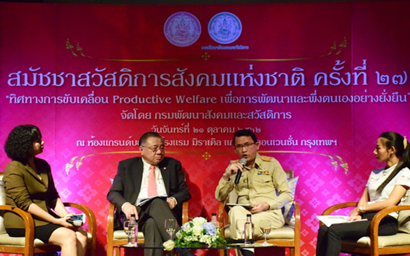 การจัดกิจกรรมในปีนี้ ประกอบไปด้วย ช่วงเช้า เวทีสมัชชาสวัสดิการสังคมแห่งชาติ หัวข้อ “ทิศทางการขับเคลื่อน Productive Welfare เพื่อการพัฒนาและพึ่งตนเองอย่างยั่งยืน” ผู้ร่วมเสวนาประกอบด้วย ศาสตราจารย์วุฒิสาร ตันไชย เลขาธิการสถาบันพระปกเกล้า นายพงศ์นคร โภชากรณ์ ผู้อำนวยการส่วนการวิเคราะห์เศรษฐกิจมหภาค นางสาวปุญณภัทร ฟอสเตอร์ รองผู้จัดการวิสาหกิจสุขภาพชุมชน นางสาวชุติมา พัฒนพงศ์ นักวิชาการอิสระ และนางสาวธิดาพร เสาวนะ ผู้อำนวยการสำนักงานคณะกรรมการส่งเสริมการจัดสวัสดิการสังคมแห่งชาติ