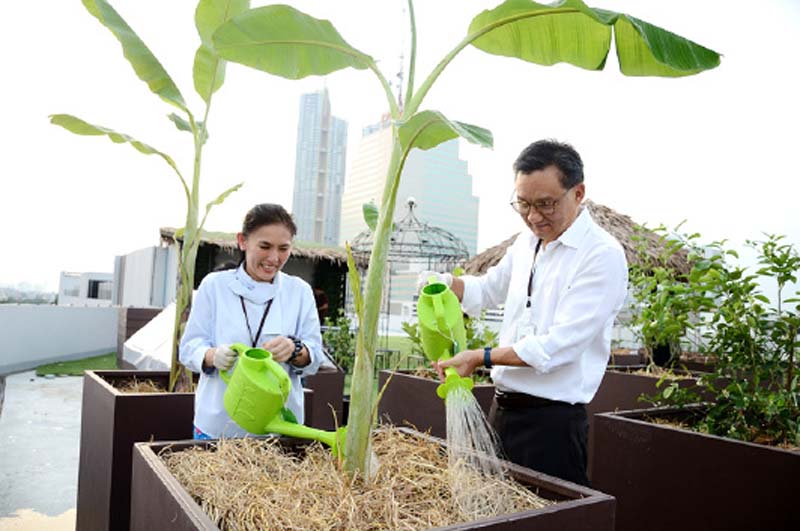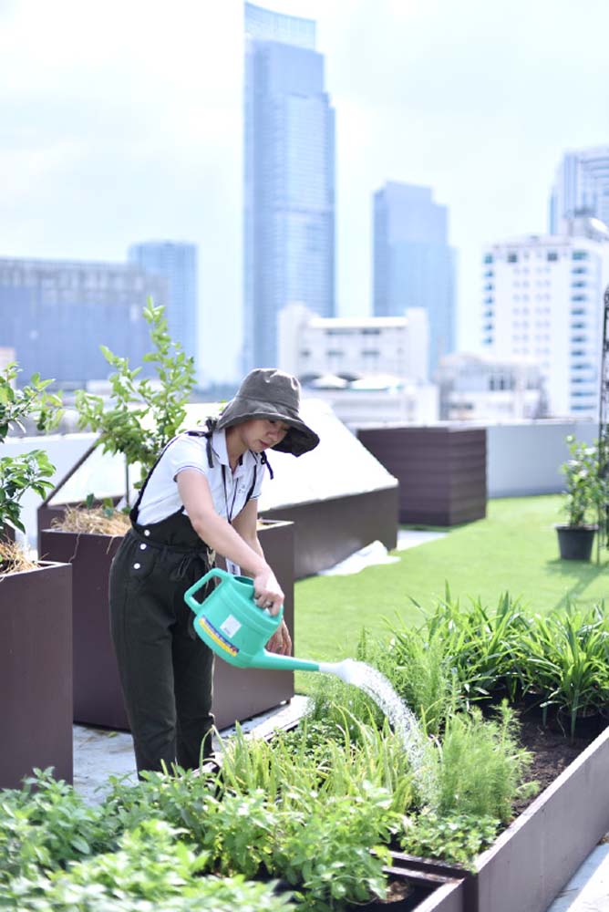 บอสสาวสายเฮลท์ตี้ นางสาวดุษฎี ตันเจริญกรรมการผู้จัดการ จับมือผู้บริหาร นายวรสิทธิ์โภคาชัยพัฒน์ ประธานเจ้าหน้าที่บริหาร, นายศักดินาแม้นเลิศ รองกรรมการผู้จัดการสายงานบริหารโครงการ และพนักงานกว่า 100 ชีวิต ร่วมกันเนรมิตพื้นที่ว่างบนดาดฟ้าให้กลายเป็นพื้นที่สีเขียวและปลูกผักผลไม้อินทรีย์ (Organic) เพื่อเป็นจุดเริ่มต้นของการส่งเสริมให้พนักงานมีสุขภาวะที่ดี ตลอดจนสร้างเป็นแหล่ง Sharing แลกเปลี่ยนเรียนรู้และกินอยู่อย่างยั่งยืน