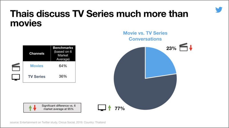 It was also found that in general, Thais Tweet more about TV series (77 per cent) than movies (23 per cent), bucking the regional trend where 64 per cent of the conversation is about movies and just 36 per cent about TV series.