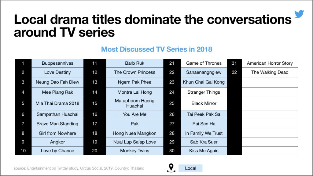 When Thais tweet about TV series and movies, they do so in different ways. Passionate and engaged, fans discuss in length TV series’ plots and storylines, and in the case of historical TV dramas discuss historical accuracy.