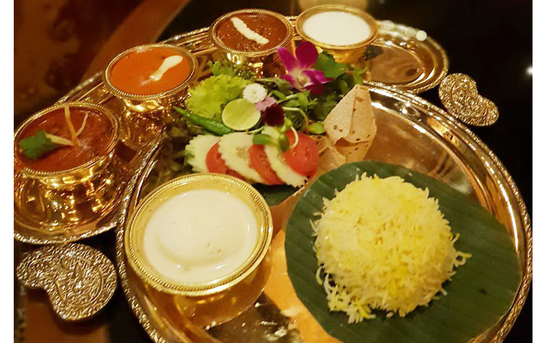 นอกจากนี้ ยังมีเมนูที่ถูกเสียบด้วยทองเหลืองแหลมย่างบนเตาถ่าน อย่าง Tandoori Jhinga กุ้งย่างในเตาทันดูร์, Tandoori Chaap แกะอบสมุนไพรย่างในเตาทันดูร์ และ BawarchiMurgh Malai Kebab เคบับไก่ฉบับบาวาร์ชิ ปิดท้ายด้วยขนมหวานอย่าง Rasmalai หรือชีสเค้กแบบอินเดียนั่นเองอีกทั้ง ยังมีขนมปังนานแบบธรรมดา ชีสนานและ พาราต้า เพื่อทานกับแกงต่างๆ ได้อีกด้วย ราคาอาหารชุดนี้เพียง 999++ บาทหรือหากใครไม่ทานเนื้อ ก็มีชุดที่เป็น vegetarian หรือที่เรียกว่า Queen’sCourtyard ราคาชุดละ 799++ บาทอีกด้วย พิเศษกับโปรโมชั่นลด 20% สำหรับอาหารสองชุดนี้ ตั้งแต่วันนี้ไปจนถึง30 ธันวาคม 2562