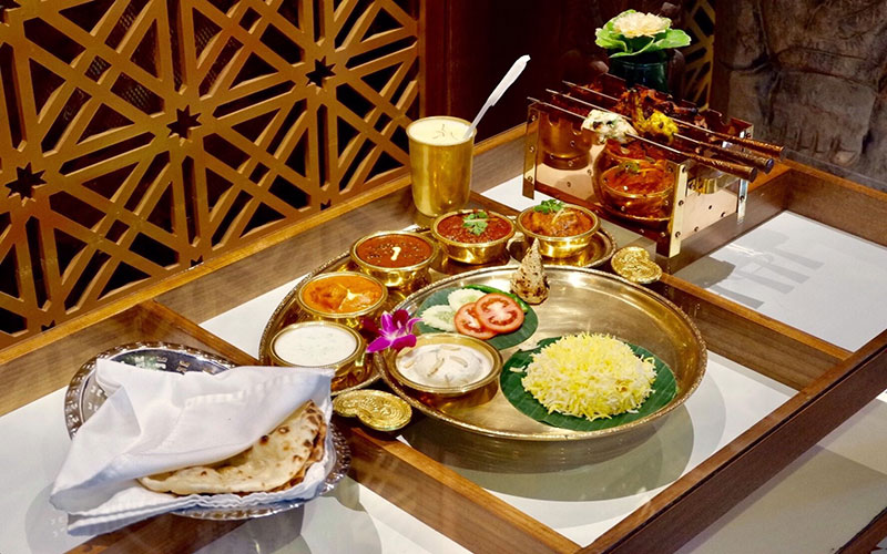 หรือจะเลือกเป็นชุด Tasting Menu ที่เรียกว่า King’s Courtyard ที่ประกอบไปด้วย Saffron Lassi เป็นเวลคัมดริ๊งค์ที่มีส่วนผสมของโยเกิร์ตและแซฟฟรอน, Biryani Rice ข้าวบริยานีเสิร์ฟมากับแกง 5 อย่าง, Rogan Josh แกงกะหรี่เนื้อแกะจากมองโกเลีย, Salmon Tikka Masala แกงมาซาล่าแซลมอนย่าง, Butter Chicken แกงไก่เนยแบบอินเดีย, Bawarchi Dal Makhani แกงถั่วเลนทิลและ Raita Cucumber and Yoghurtซอสโยเกิร์ตแตงกวา