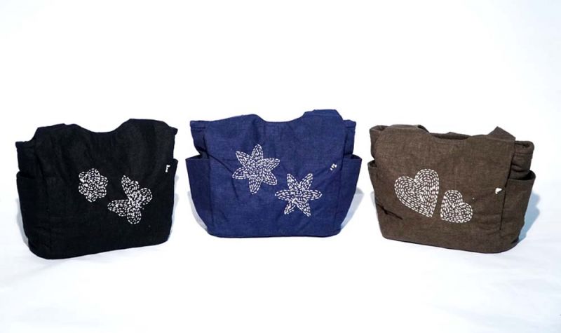 ง่ายบรรจุของได้มาก อีกทั้งยังช่วยลดการใช้ถุงพลาสติกอีกทางหนึ่ง และผ้าคลุมไหล่ เนื้อคอตตอนลินินเกรดเอมีสีสันให้เลือกมากมาย แต่ไฮไลท์คือสีม่อฮ่อม ปักลวดลายสวยงามบริเวณชายผ้าทั้งสองด้าน