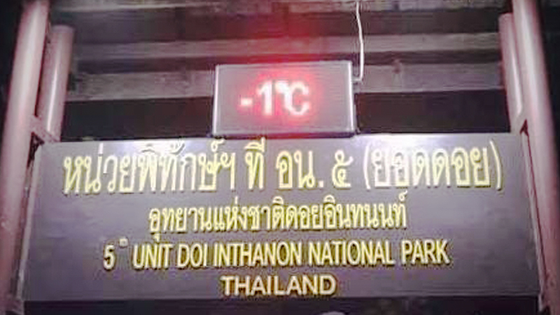 Doi Inthanon, the highest mountain in Chiang Mai province, has reported sub-zero temperatures as winter intensified.