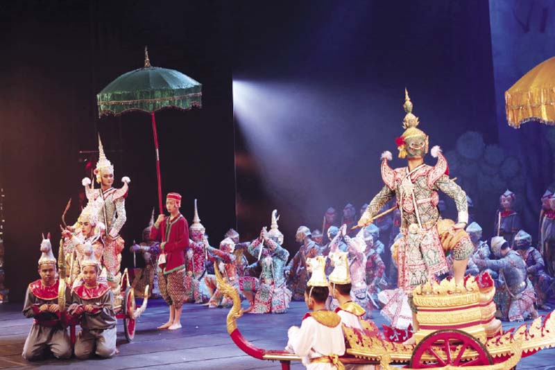 โขนรามเกียรติ์ตอน “ราพณ์พ่ายบารมีพระจักรีครองเมือง” จับความตอน สงครามครั้งสุดท้ายระหว่างฝ่ายมนุษย์ ได้แก่ พระราม พระลักษมณ์และกองทัพวานร และ กองทัพอสูร ได้แก่ ทศกัณฐ์ และบรรดาไพร่พลอสูร หลังการปะทะทัพกลางเวที ฝ่ายพระรามได้รับชัยชนะ สงครามยุติลงพระรามจึงเดินทางกลับนครอโยธยา บรมราชาภิเษกขึ้นเป็นกษัตริย์ครองกรุงอโยธยา
