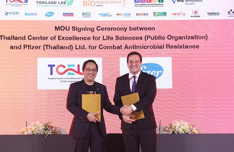 ไฟเซอร์ ประเทศไทย โดย มร.เซลิม เซสกิน ผู้จัดการใหญ่ประจำประเทศไทย ผนึก ทีเซลส์(TCELS) ลงนามความร่วมมือประกาศเจตนารมณ์ขับเคลื่อนการจัดการปัญหาเชื้อดื้อยาต้านจุลชีพในประเทศไทย