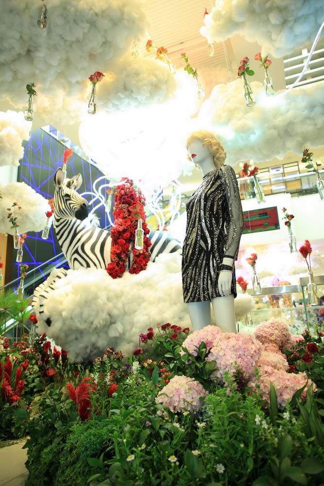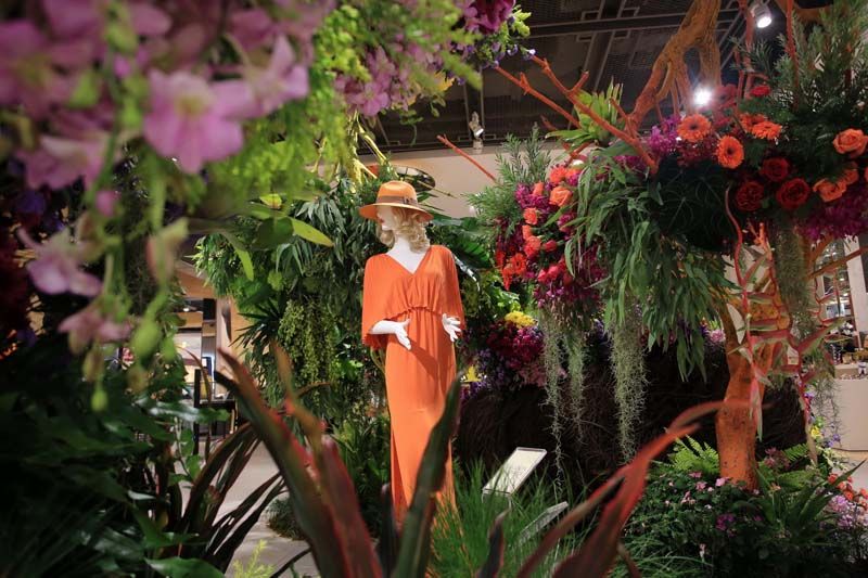 ชั้น 2 แผนกสตรี พบกับสวนดอกไม้ยักษ์ สร้างสรรค์จากรากกล้วยไม้ที่นำมาทำเป็นดอกไม้ขนาดใหญ่ แซมด้วยดอกไม้โทนสีพาสเทลอย่างสวยงาม ชั้น 3