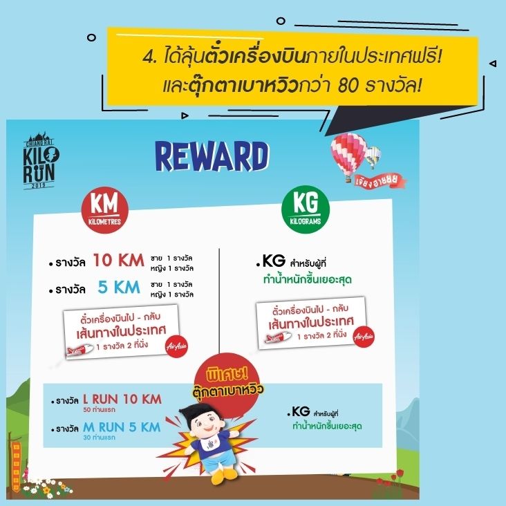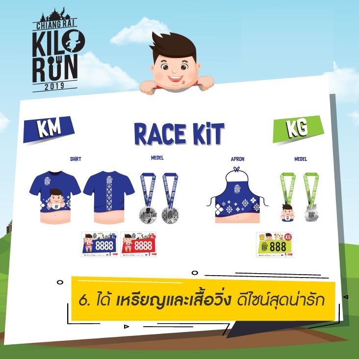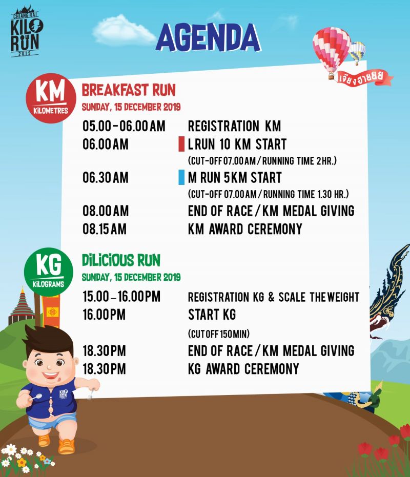 สนใจร่วมสนุกกับ “กิโลรัน เชียงราย 2019 กับกิจกรรมKM-กิโลเมตร วิ่งชมเมืองศิลปะครบรส The City of Art มี2 ระยะทาง L RUN 10กิโลเมตร และ M RUN 5 กิโลเมตร จุดปล่อยตัว ณ ลานธรรม ลานศิลป์ ถิ่นพญามังราย (ลาน ร.๕) วิ่งผ่านวิวเมืองแห่งเอกลักษณ์ทางวัฒนธรรม อาทิ วัดพระสิงห์, โรงพยาบาลโอเวอร์บรุ๊ค, โรงเรียนสามัคคีวิทยาคม, หอนาฬิกา, อนุสาวรีย์พ่อขุนเม็งราย, สะพานแม่น้ำกก, วัดร่องเสือเต้น (วัดสีน้ำเงิน), ขัวพญาเม็งราย และชาร์จพลังต่อในยามบ่ายกับKG-กิโลกรัมด้วย 8 เมนูเด็ดที่คนเชียงรายยกนิ้วคือข้าวซอยน่องไก่ -ร้านวิจิตตรา, ขนมจีนน้ำเงี้ยวหมูสับ -ร้านป้าสุข, ต้มเลือดหมู-ร้านสหรส, แกงฮังเล ข้าวเหนียว-ร้านเอกโอชา, ไส้อั่วรสเด็ด -ร้านป้าน้อง, บัวลอยไอศครีมสีหวาน-ร้านบัวลอยมือถือป้าอ้วนไนท์บาซาร์, ไอติมกะทิหอม-ร้านลุงชม รวมทั้งSignature Cheese cake หลากรส -ร้าน Melt in your mouth