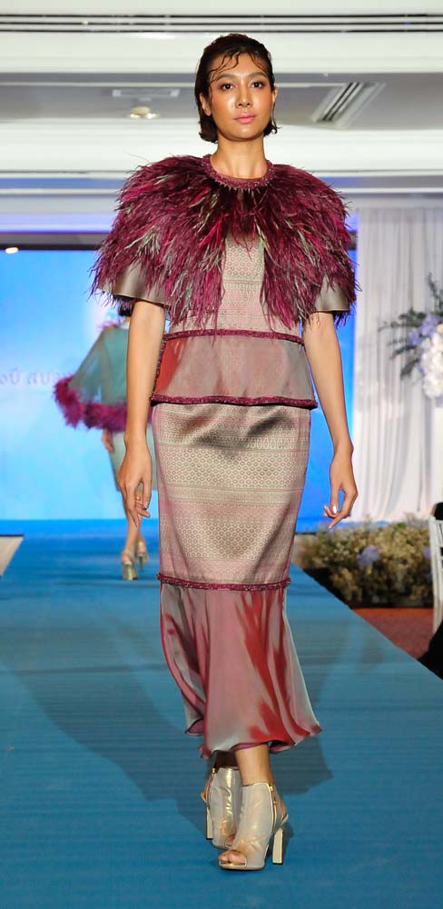 ส่วนจุดเด่นของคอลเลคชั่น “Thai Inspired” อยู่ที่โครงสร้างเสื้อ เน้นซิลลูเอทที่เรียบง่าย งามสง่า และเป็นสากลร่วมสมัยที่มีความคล่องตัวในการสวมใส่ ด้านรูปทรงเน้นความแตกต่างที่มีทั้งความทึบโปร่งเบา ความมั่นคงและพลิ้วไหว ทั้งหมดถูกนำมาผสมผสานกันอย่างลงตัว