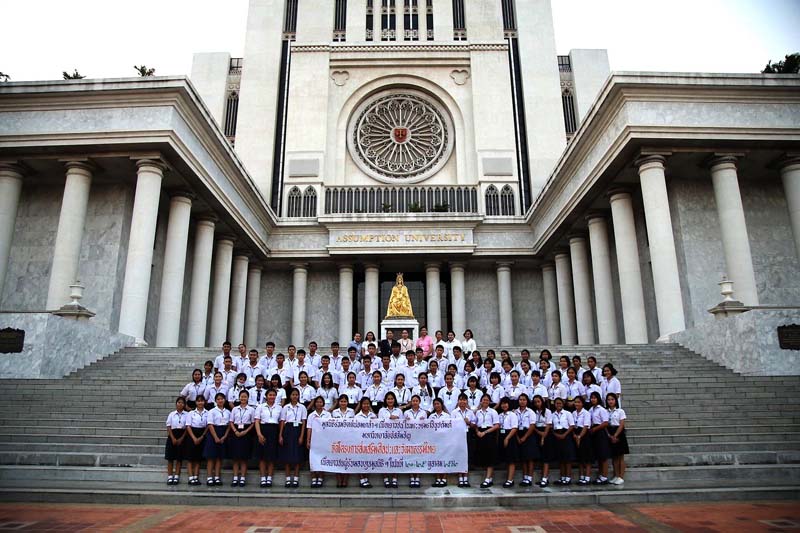ภราดา ดร.บัญชา แสงหิรัญ ประธานโครงการ จัดอาจารย์พาเยาวชนทั้งหมด ชมความงดงามของมหาวิทยาลัยอัสสัมชัญที่มีนักศึกษาต่างชาติ กว่า 100 ประเทศมาศึกษา
