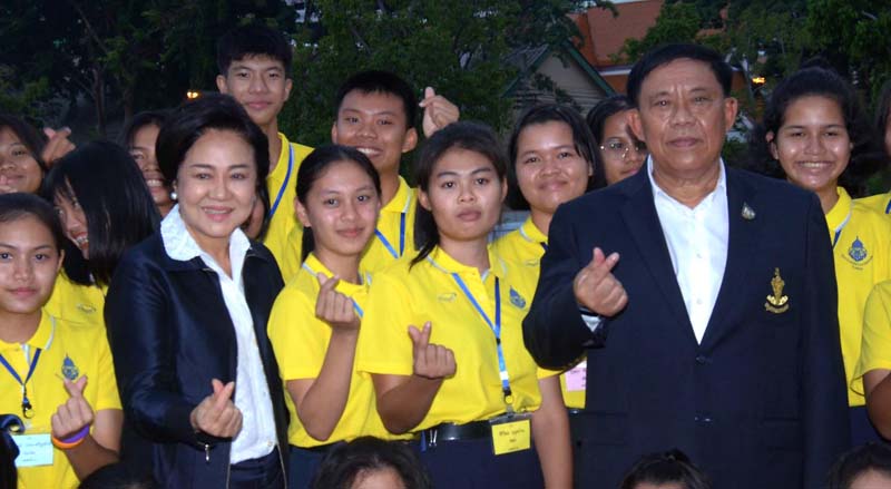พล.ต.อ.อัศวิน ขวัญเมือง ผู้ว่าฯ กทม. และ วาสนา ขวัญเมือง ประธานอุปการะเยาวชนประจำ กทม. ต้อนรับเยาวชนรับทุนทั่วประเทศ โดยมี ภราดา ดร.บัญชา แสงหิรัญ, วิไล ตั้งสิน วิทยฐานกรณ์, กรรณภรณ์ วงศ์ปิยะกุล, ศศิธร ทัศนัยนา ร่วมด้วย