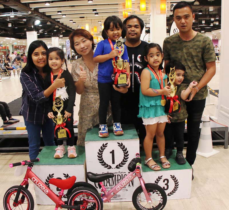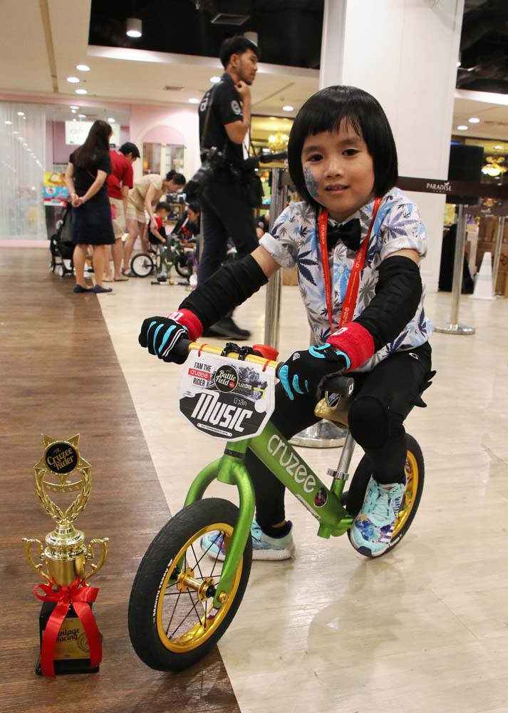 เด็กชายธรา สานนท์ หรือ น้องก้าว ได้รับรางวัลที่ 1 ของรุ่น A อายุ 2 ปี 6 เดือน ถึง 3 ปี ซึ่งวลีรัตน์ ปิ่นเกตุ คุณแม่ของน้องก้าวเล่าให้ฟังว่า“น้องก้าวมีความสนใจในการขี่จักรยานตั้งแต่อายุ2 ขวบ ซึ่งคุณแม่เป็นคนฝึกให้สอนด้วยตัวเอง ครั้งแรกน้องลองเล่นจักรยานขาไถแบบ 4 ล้อก่อน จากนั้นก็มาฝึกเป็น 2 ล้อ ใช้ระยะเวลาประมาณ 5 เดือน ก่อนมาลงสนามแข่งขันครั้งนี้ ได้รับถ้วยรางวัลพร้อมเหรียญกลับบ้าน สร้างความภาคภูมิใจให้คุณพ่อคุณแม่เป็นอย่างมาก ซึ่งทางบ้านก็จะสนับสนุนให้น้องก้าวได้พัฒนาฝีมือให้ดียิ่งขึ้นไปอีก เพราะกีฬาชนิดนี้มีประโยชน์ และสร้างทักษะที่ดีทั้งการทรงตัว การใช้สมาธิให้กับเด็กๆ อีกด้วยค่ะ”