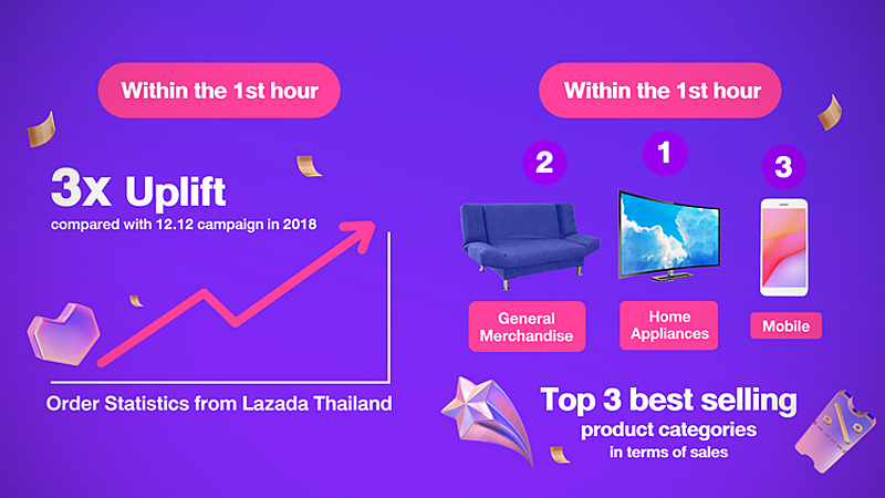 Lazada’s 12.12 grand year-end sale broke all records in just the first hour, earning three times more orders and with headphones the best-selling for the first time, Other noteworthy statistics during the first hour of the campaign included: