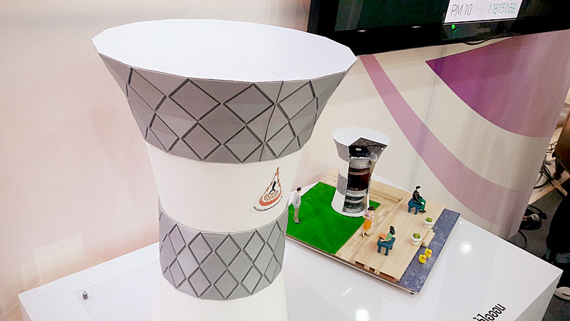 The prototype measures 120 cm x120 cm x120 cm and costs Bt200,000 per device. It can eliminate dust up to 100,000 micrograms an hour equal to the efficiency of a medium-sized tree in a total area of about 9 square metres with an average electricity cost of Bt1.50 per hour.