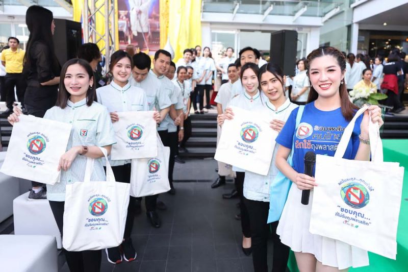 ด้าน ปิยะวัฒน์ ฐิตะสัทธาวรกุล รองประธานกรรมการบริหาร บมจ.ซีพี ออลล์ ผู้ก่อตั้งร้านเซเว่น อีเฟเว่น ในประเทศไทย กล่าวว่า เพื่อเป็นการขานรับนโยบายของรัฐบาลในการขับเคลื่อนการงดใช้ถุงพลาสติกร่วมกับเครือข่ายภาคธุรกิจเอกชนอีกกว่า 47 ราย ซีพี ออลล์ จึงได้ประกาศเจตนารมณ์ “รวมพลังคนไทย เลิกใช้ถุงพลาสติก” เพื่ออนุรักษ์สิ่งแวดล้อม โดยร้านเซเว่น อีเลฟเว่น จะงดให้บริการถุงพลาสติกหูหิ้วที่ร้านเซเว่น อีเลฟเว่น ทั่วประเทศ พร้อมขอเชิญชวนลูกค้านำถุงผ้ามาใช้แทนถุงพลาสติกหรือวัสดุทดแทนที่เป็นมิตรกับสิ่งแวดล้อม เริ่มตั้งแต่วันที่ 1 มกราคม 2563 เป็นต้นไป