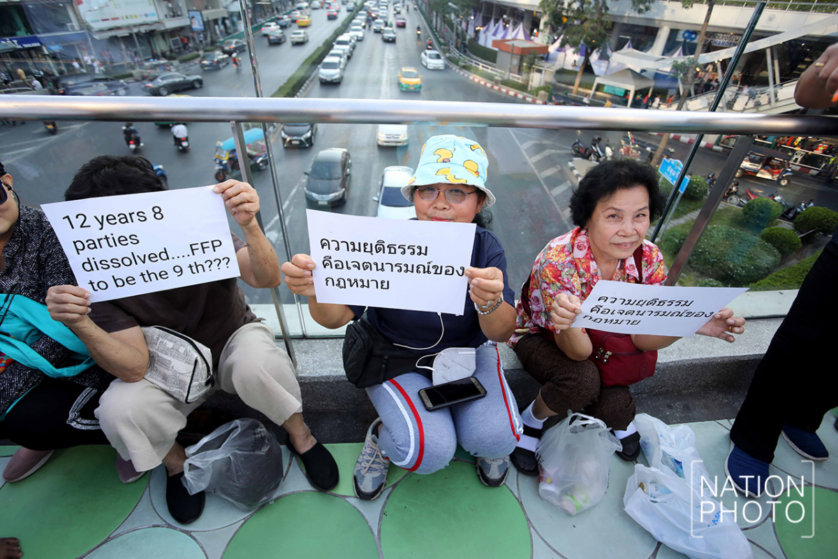 Supporters of Future Forward Party (FWP) were gathering on the skywalk of Pathumwan intersection at 5pm today (December 14) for a rally, called by FWP leader Thanathorn Juangroongruangkit, to express his opposition to the current political situation.