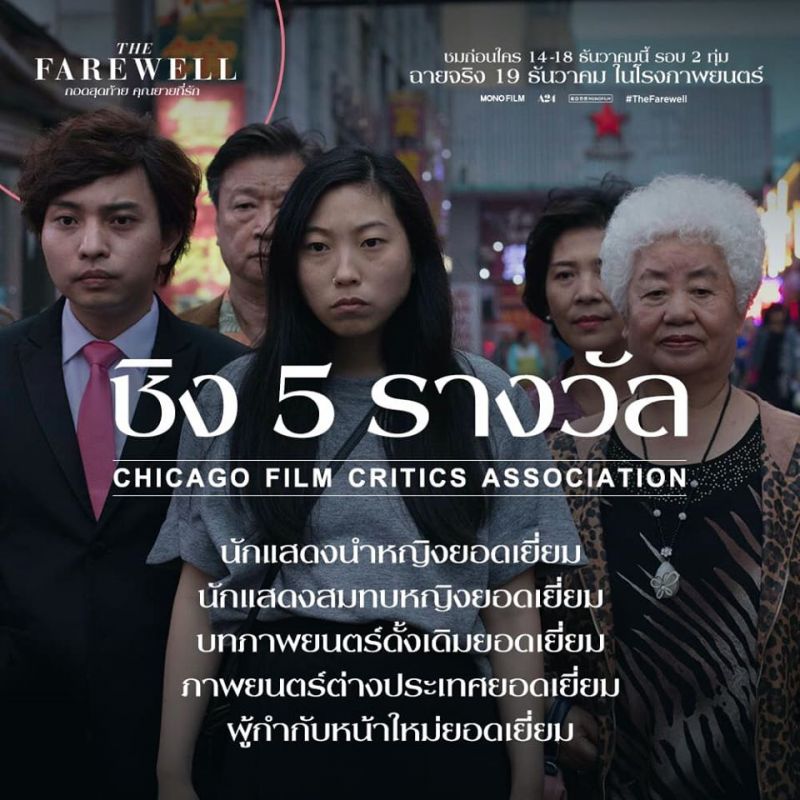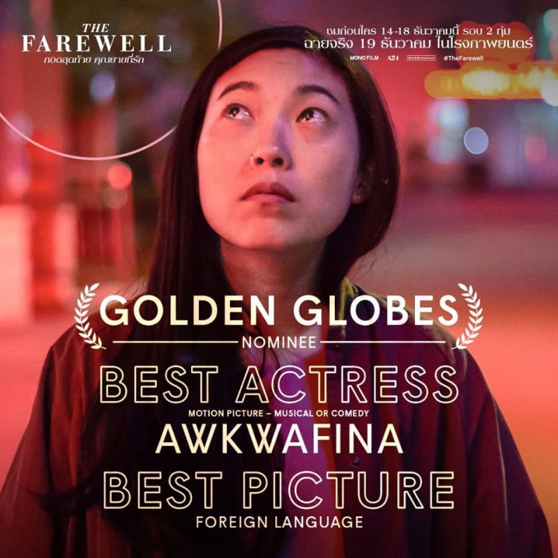 เปิดฉายสำหรับนักวิจารณ์ และคนในวงการภาพยนตร์ กันไปแล้วสำหรับภาพยนตร์กระแสดีอย่าง The Farewell กอดสุดท้ายคุณยายที่รัก ภาพยนตร์ที่สร้างจากเค้าโครงเรื่องจริงของผู้กำกับ ลูลู่ หวัง ซึ่งคว้านักแสดงนำอย่าง “อควาฟีน่า” และ “จ้าว ชูเซิน” มาถ่ายทอดเรื่องราวความผูกพัน ผสมความต่างทางวัฒนธรรมระหว่างชาวจีนและอเมริกัน งานนี้นอกจากส่งให้ ลูลู่ หวัง ถูกจับตามองในฐานะผู้กับหน้าใหม่แล้ว นักแสดงนำทั้งสองคนอย่าง อควาฟีน่า และ จ้าว ชูเซิน ยังได้รับการเสนอชื่อเข้าชิงรางวัลในอีกหลายเวที