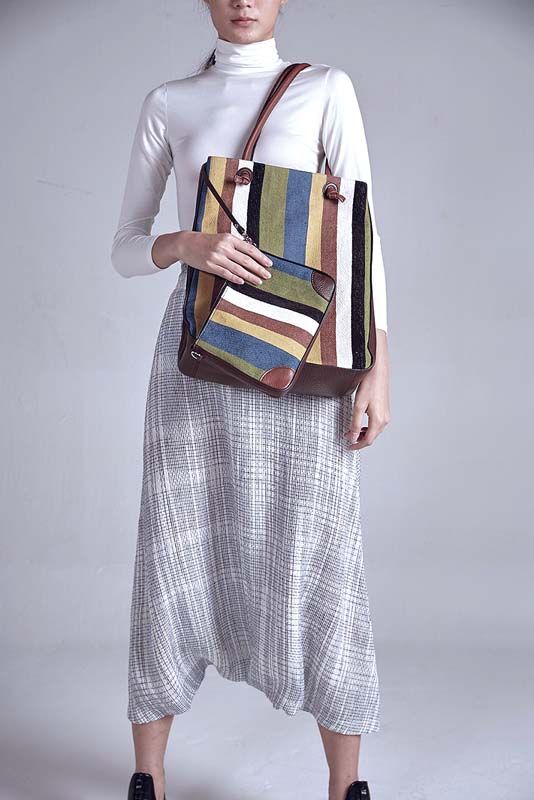 กุลวิทย์ เลาสุขศรี อีกหนึ่งศิลปินรับเชิญมากไอเดีย ที่มาร่วมออกแบบกระเป๋าสะพาย (Leather Bag) พร้อมกับกระเป๋าใบเล็กด้านในและสายยาว ตอบโจทย์ไลฟ์สไตล์คนเมือง ทำจากผ้าฝ้ายและกัญชงให้สัมผัสนุ่มและด้าน ในเวลาเดียวกัน เติมสีสัน ลวดลายและคู่สีลงบนผ้าทอมืออันประณีตจากช่างฝีมือชาวดอยตุง แล้วเพิ่มความพิเศษอีกขั้นด้วยหนังวัวแท้ บริเวณสายและด้านข้างของกระเป๋า โดยมีแรงบันดาลใจในการออกแบบมาจากเครื่องแต่งกายชนเผ่าชาวอาข่า ถือเป็นอีกหนึ่งไอเท็มที่ช่วยเติมสีสันในการใช้ชีวิตประจำวันให้สนุกยิ่งขึ้น