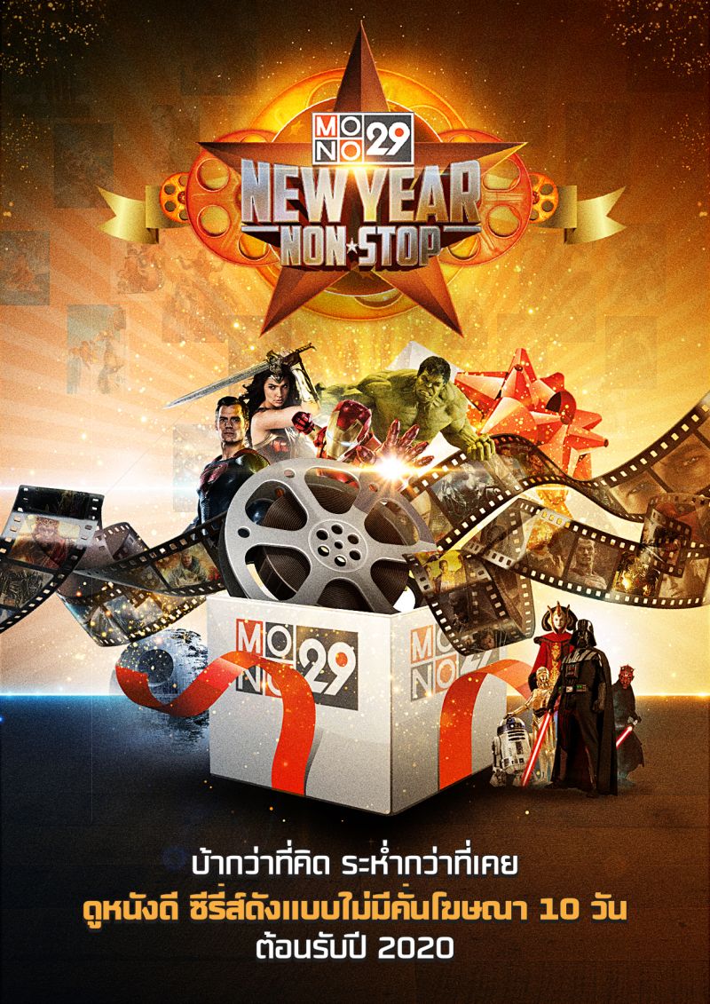 ยังคงรักษาคุณภาพและครองแชมป์เรตติ้งได้อย่างเหนียวแน่น สำหรับ สถานีโทรทัศน์ ช่อง MONO29 (โมโน ทเวนตี้ไนน์) ในเครือ โมโน กรุ๊ป ล่าสุดกับกิจกรรมสุดพิเศษเพื่อเป็นของขวัญให้กับผู้ชม ในช่วงเทศกาลแห่งความสุขเฉลิมฉลองส่งท้ายปีเก่าต้อนรับปีใหม่ ด้วยการขนกองทัพหนังดี-ซีรีส์ดัง กว่า 100 เรื่อง ให้ชมอย่างเต็มอิ่มแบบต่อเนื่องไม่มีโฆษณาคั่น กับกิจกรรม “MONO29 NEW YEAR NON-STOP” (โมโน ทเวนตี้ไนน์ นิว เยียร์ นัน-สต๊อป) บ้ากว่าที่คิด ระห่ำกว่าที่เคย ดูหนังดี ซีรีส์ดัง แบบไม่มีคั่นโฆษณา 10 วัน ต้อนรับปี 2020 ตั้งแต่วันที่ 23 ธันวาคม 2562 ถึงวันที่ 1 มกราคม 2563 ซึ่งมีโปรแกรมภาพยนตร์และซีรีส์ดัง จ่อคิวลงจออย่างคึกคักกว่า 100 เรื่อง อาทิ AVENGERS: AGE OF ULTRON (อเวนเจอร์ส: มหาศึกอัลตรอนถล่มโลก), TRANSFOEMER : AGE OF EXTINCTION (ทรานส์ฟอร์เมอร์ส 4 : มหาวิบัติยุคสูญพันธุ์), BATMAN V SUPERMAN : DAWN OF JUSTICE (แบทแมน ปะทะ ซูเปอร์แมน แสงอรุณแห่งยุติธรรม), ICE AGE 1-5 ภาค (เจาะยุคน้ำแข็งมหัศจรรย์), Kung Fu Yoga (โยคะสู้ฟัด), TEENAGE MUTANT NINJA TURTLES: OUT OF THE SHADOWS (เต่านินจา จากเงาสู่ฮีโร่), VENOM (เวน่อม), CINDERELLA (ซินเดอเรลล่า), SPIDER-MAN 3 (ไอ้แมงมุม 3), PIRATES OF THE CARIBBEAN: DEAD MAN’S CHEST (สงครามปีศาจโจรสลัดสยองโลก) ฯลฯ