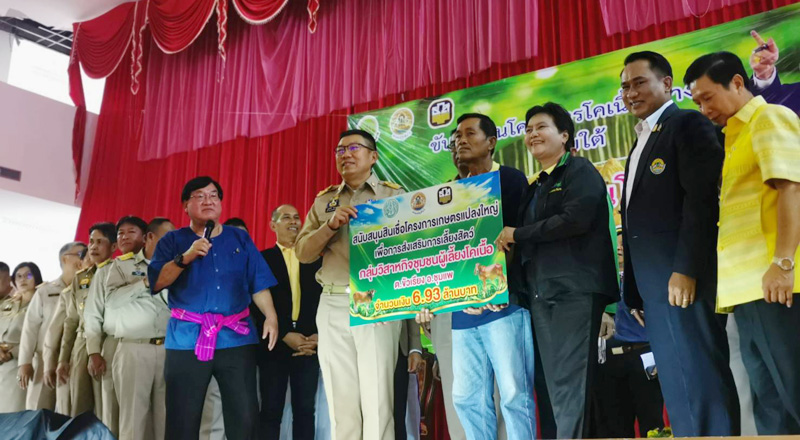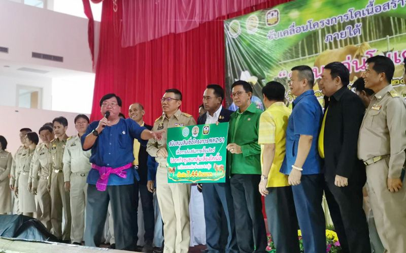 ขณะที่นายสัตวแพทย์สรวิศ ธานีโต อธิบดีกรมปศุสัตว์ กล่าวว่า โครงการส่งเสริมการเลี้ยงสัตว์และกิจการที่เกี่ยวเนื่อง รายละเอียด ดังนี้ 1) โครงการส่งเสริมการผลิตโคเนื้อ กิจกรรมการเลี้ยงโคขุนจำนวน 40,000 รายๆ ละ 5 ตัว รวมโคขุนอย่างน้อย 200,000 ตัว สร้างหรือพัฒนาคอกกลางรวบรวมโคขุน 200 แห่ง (สัดส่วนประมาณ 500/คอก) ในพื้นที่ทั่วประเทศ และคอกกักเพื่อการส่งออก จำนวน 20 แห่ง (รองรับโคขุนประมาณ 1,000 ตัว/คอก) ในพื้นที่ชายแดนภาคเหนือ หรือพื้นที่ที่มีศักยภาพให้กับเกษตรกร 2) โครงการส่งเสริมการผลิตกระบือ เกษตรกรเป้าหมาย 4,000 รายๆ ละ 5 ตัว รวม 20,000 ตัว 3) โครงการส่งเสริมการผลิตแพะเนื้อ เกษตรกรเป้าหมาย 1,000 รายๆ ละ 21 ตัว รวม 21,000 ตัว 4) โครงการการส่งเสริมการผลิตไก่พื้นเมือง เกษตรกรเป้าหมาย 294 ราย ผลิตไก่พื้นเมืองขุน 264,000 ตัว/ปี และ 5) กิจการที่เกี่ยวเนื่อง ซึ่งสามารถดำเนินการได้ทั่วประเทศตามศักยภาพและแผนธุรกิจที่มีความชัดเจน ได้แก่ ธุรกิจศูนย์ผลิตอาหารสัตว์ (Feed Center) การผลิตพืชอาหารสัตว์ การผลิตวัตถุดิบอาหารสัตว์ ธุรกิจการส่งขนและการกระจายสินค้า (Logistics) เป็นต้น