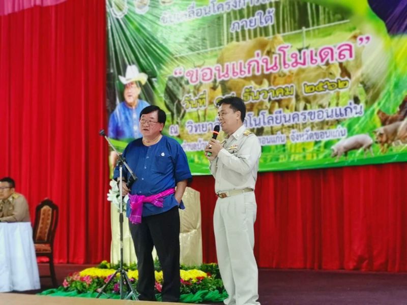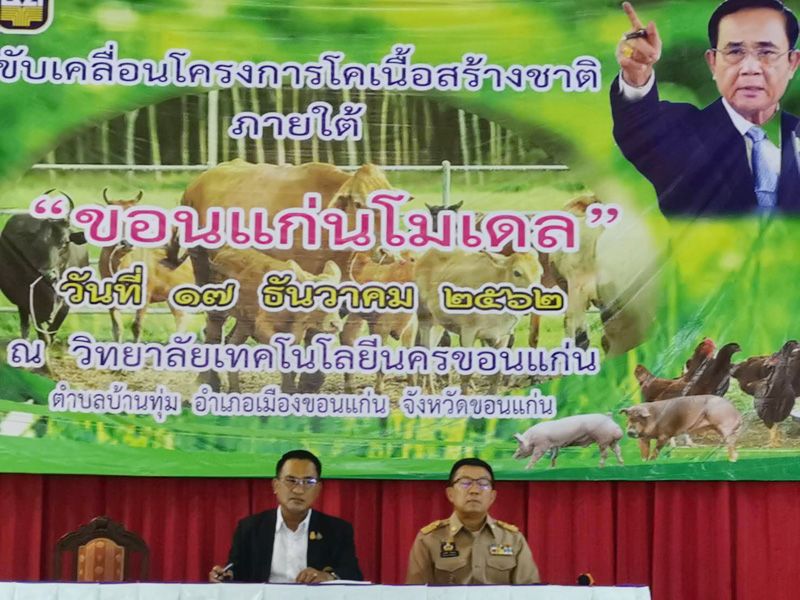 “จ.ขอนแก่นมีความพร้อมทั้งในด้านพื้นที่ จึงได้เริ่มขับเคลื่อน ‘ขอนแก่นโมเดล’ เพื่อเป็นต้นแบบให้อีก 20 จังหวัดในภาคอิสาน และเพื่อเป็นของขวัญปีใหม่ให้พี่น้องเกษตรกร โดยภายในงานมีการจัดประชุมชี้แจงให้กับเกษตรกร และผู้ที่สนใจในอาชีพปศุสัตว์เข้าร่วมรับฟัง จาก 15 อำเภอ ใน จ.ขอนแก่น รวม 1,000 คน ณ วิทยาลัยเทคโนโลยีนครขอนแก่น อ.เมือง จ.ขอนแก่น และจาก 11 อำเภอ ใน จ.ขอนแก่น รวม 1,000 คน ณ วิทยาลัยการอาชีพบ้านไผ่ อ.บ้านไผ่ จ.ขอนแก่น ทั้งนี้ จังหวัดขอนแก่นได้ดำเนินการโครงการสนับสนุนสินเชื่อเพื่อการส่งเสริมการเลี้ยงสัตว์และกิจการที่เกี่ยวเนื่องไปเบื้องต้นแล้ว มีกลุ่มเกษตรกร กลุ่มวิสาหกิจชุมชน กลุ่มสหกรณ์สนใจขอเข้าร่วมโครงการจำนวน 149 กลุ่ม จำนวนเกษตรกร 1,487 คน ปัจจุบัน ธ.ก.ส. ได้อนุมัติเงินงบประมาณให้กับเกษตรกรและแปลงใหญ่โคเนื้อ จำนวน 3 กลุ่ม เป็นเงิน 25.57 ล้านบาท โครงการสินเชื่อชุมชนปรับเปลี่ยนเพื่อพัฒนาอาชีพของผู้มีรายได้น้อย (XYZ) จำนวน 4 กลุ่ม เป็นเงิน 7.44 ล้านบาท รวม 33 ล้านบาท และยังมีเกษตรกรที่สนใจเข้าร่วมโครงการอีกจำนวนมาก โดยได้มอบป้ายสนับสนุนเงินเพื่อผลักดันโครงการให้เกิดขึ้นอย่างมีศักยภาพ” นายประภัตร กล่าว